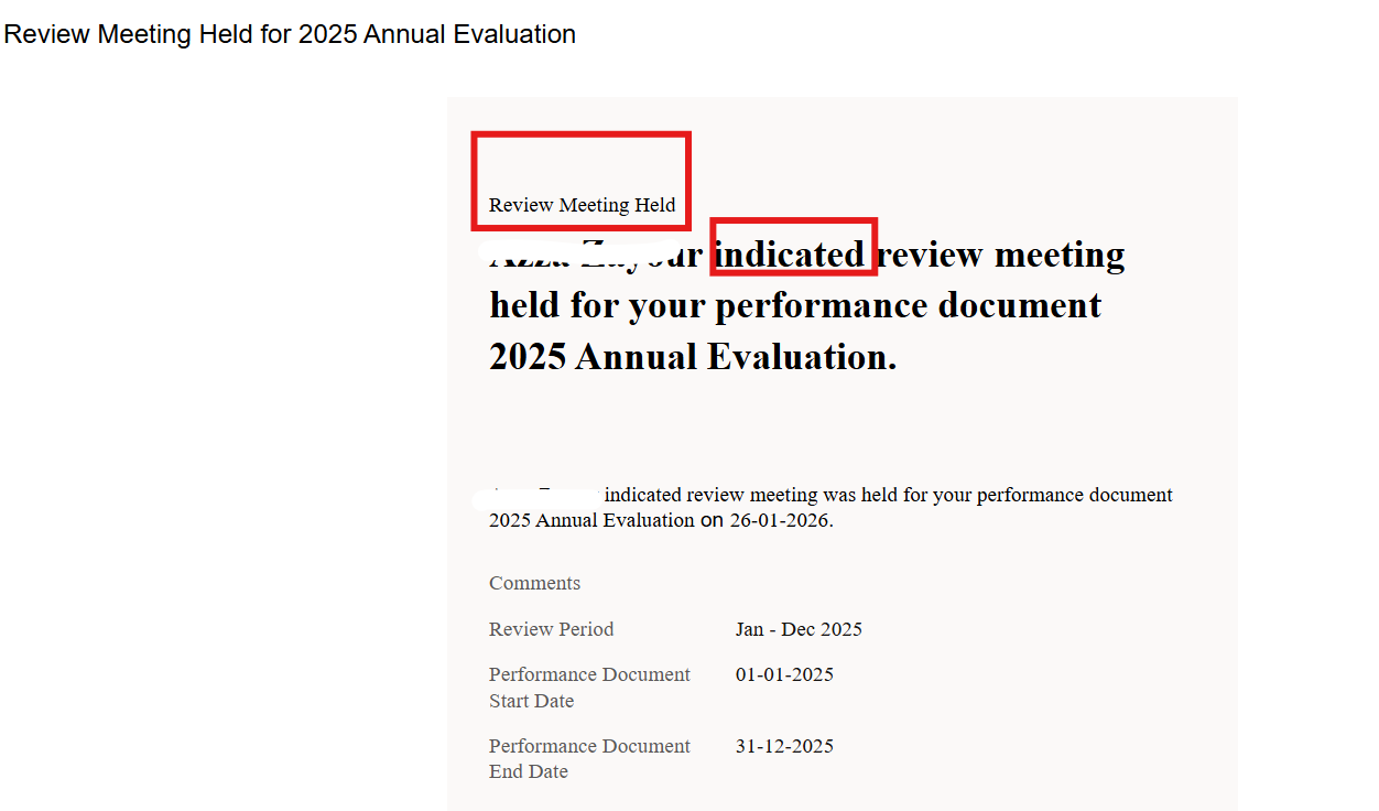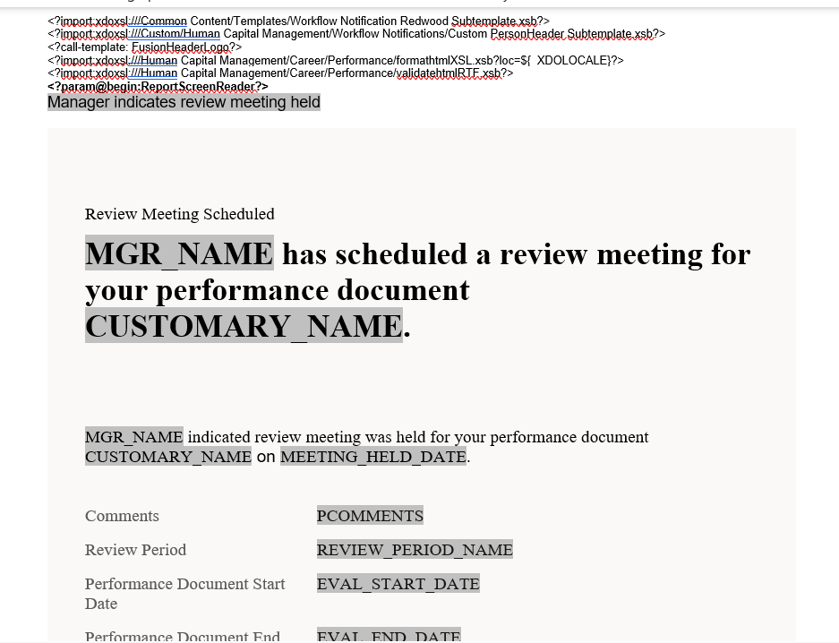 We are trying to update the text of the Review Meeting Held notifications in Redwood.