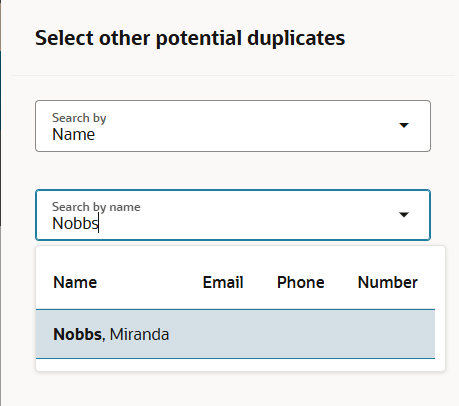 Despite the testing being for the exact same candidate, ORC is indicating, "We couldn't find any matches." The match will only appear when you "Select other potential duplicates."