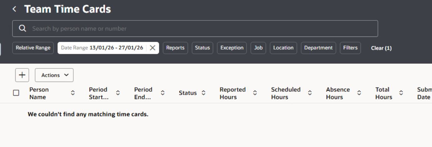Team activity Centre - Absence Planning & Team Time Cards are coming blank