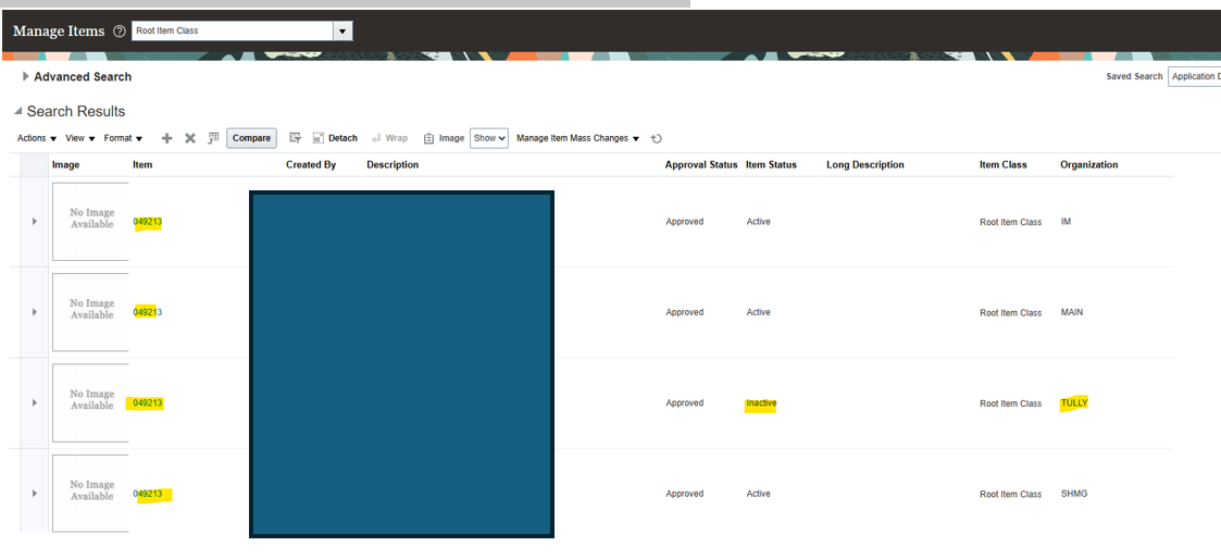 We would like to know how the inactivation of an item reference to an inventory organization impacts the ability to purchase this item from said inventory organization.