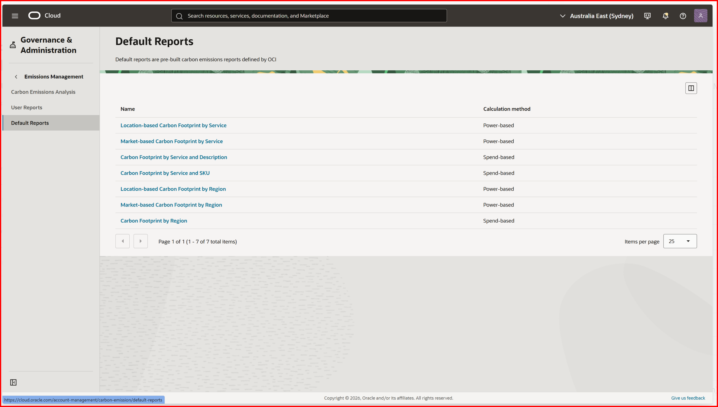 Hi, I tried accessing the Carbon Emission Report in the OCI cloud. But I do not see any data.