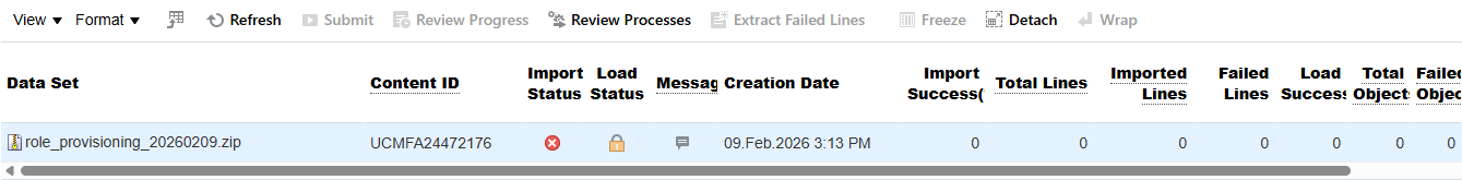 Error while adding roles using HDL in User.dat
