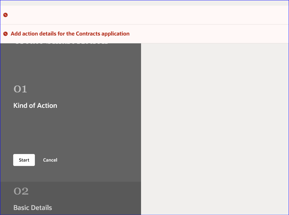 While creating a Smart Action using Page Personalization, getting error as "Add action details for the Contracts application".