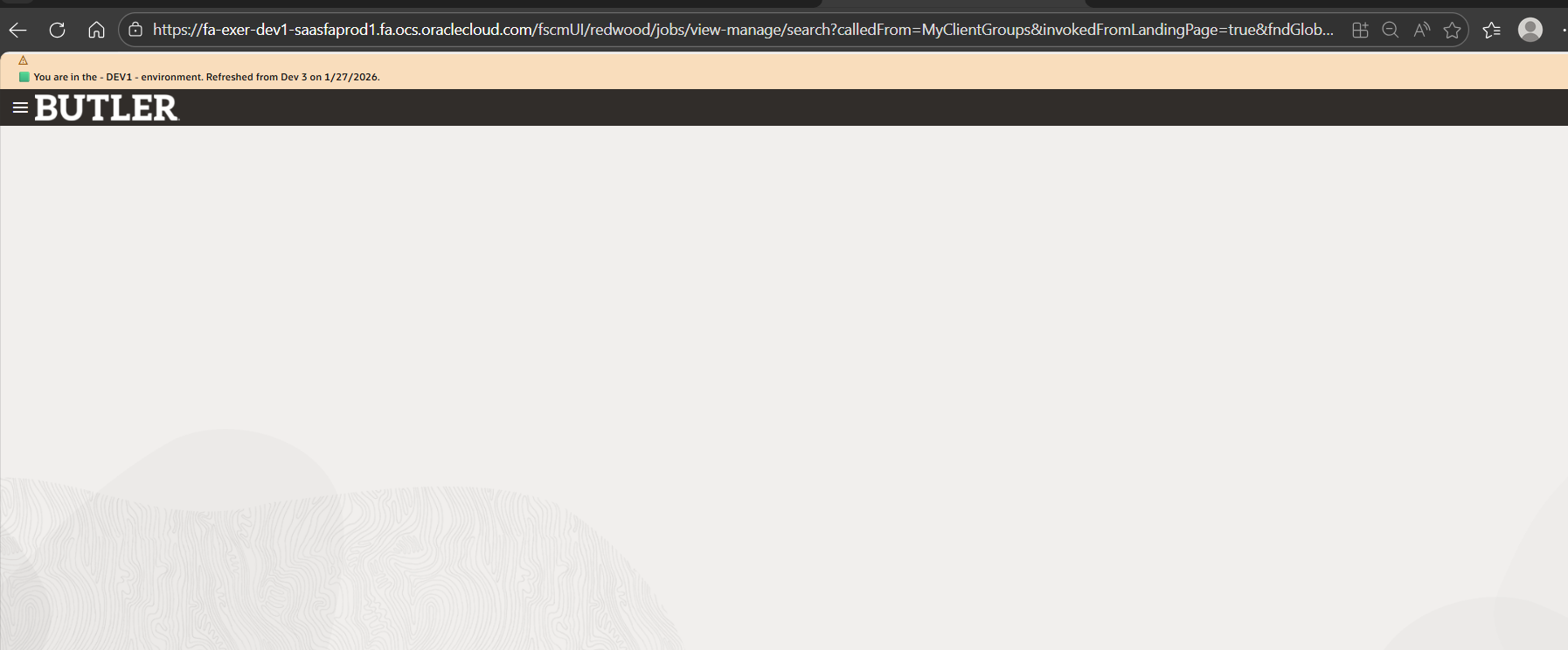 We are working on 26A release . I was just in a meeting and someone said they When we click on jobs under Workforce Structure we are getting a blank page. I have re ran ESS job to create index definition and perform initial ingest to OSCS fa-hcm-job. We have logged out cleared browsing history and tried again. Tried in a different web browser and still a blank screen.