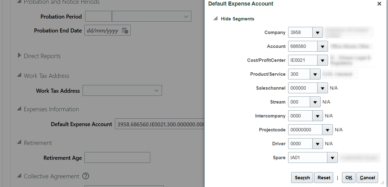 Trying to add Person Costing. My Client Groups > Payroll > Costing for Persons at assignment level. LOV for Company, Account, Cost Centre, spare are blank,