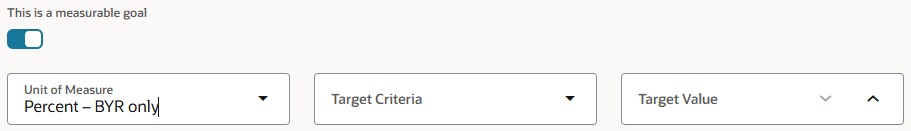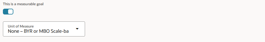 We're facing an issue in rule we applied on goals measurement field, in measurement section we've a field Unit of measure and when value is None – BYR or MBO Scale-based goal we should not see the other two fields i.e. Target Criteria and Target Value and for other values in field Unit of measure we should see the other two fields.