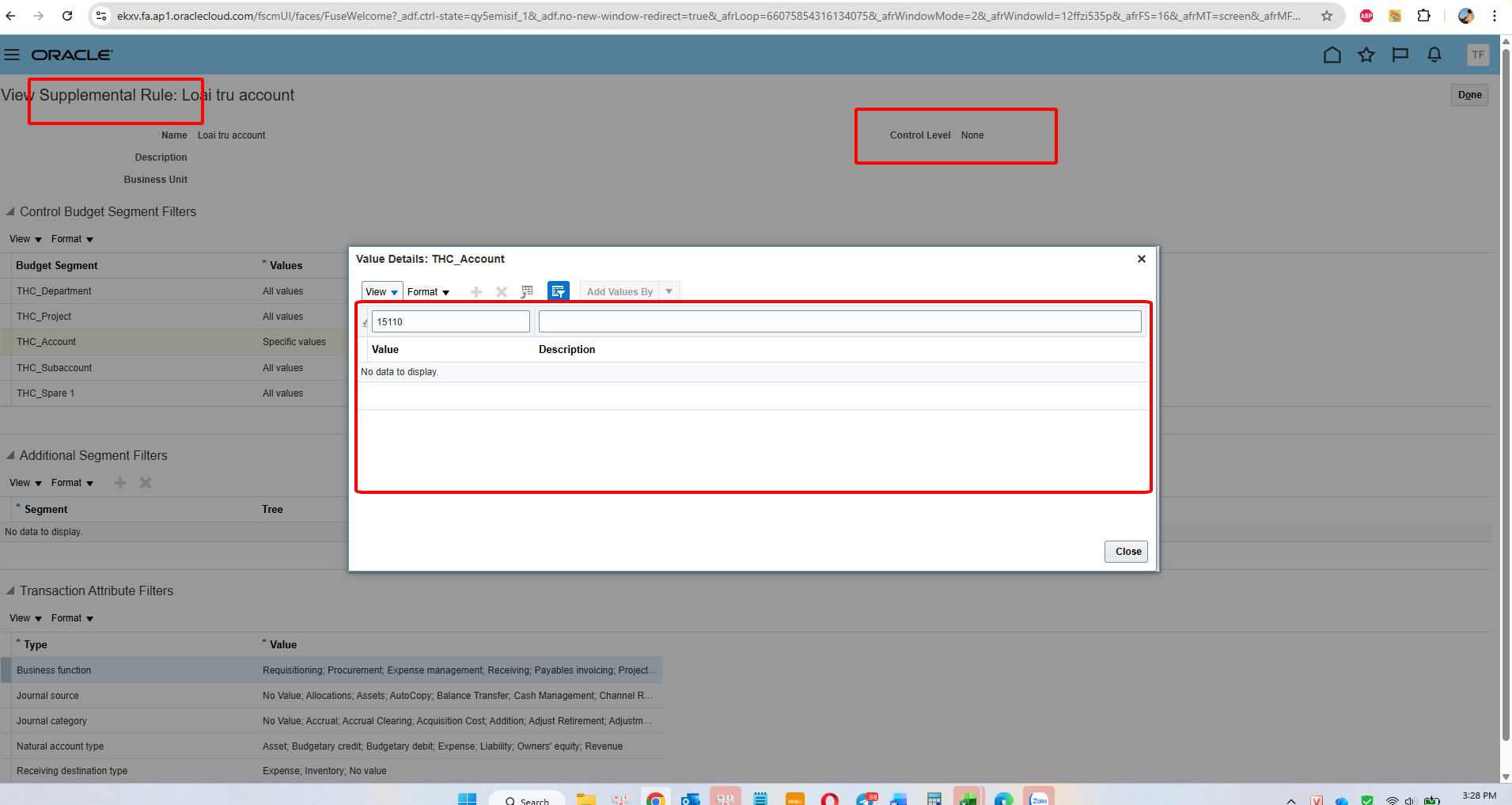 In the supplementary rules, we did not set up anything further for Account 151110.