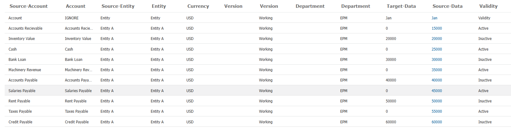 Oracle EPM Data Exchange Validity SQL code working inversely