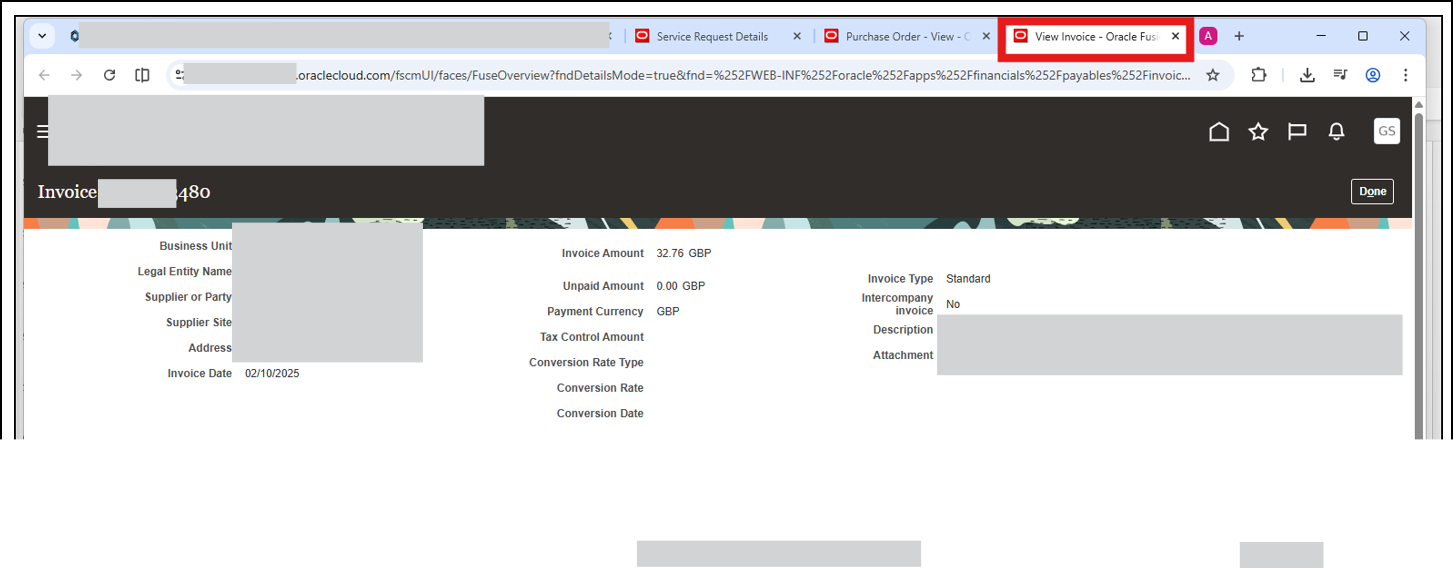 c) New tab opens showing invoice details: