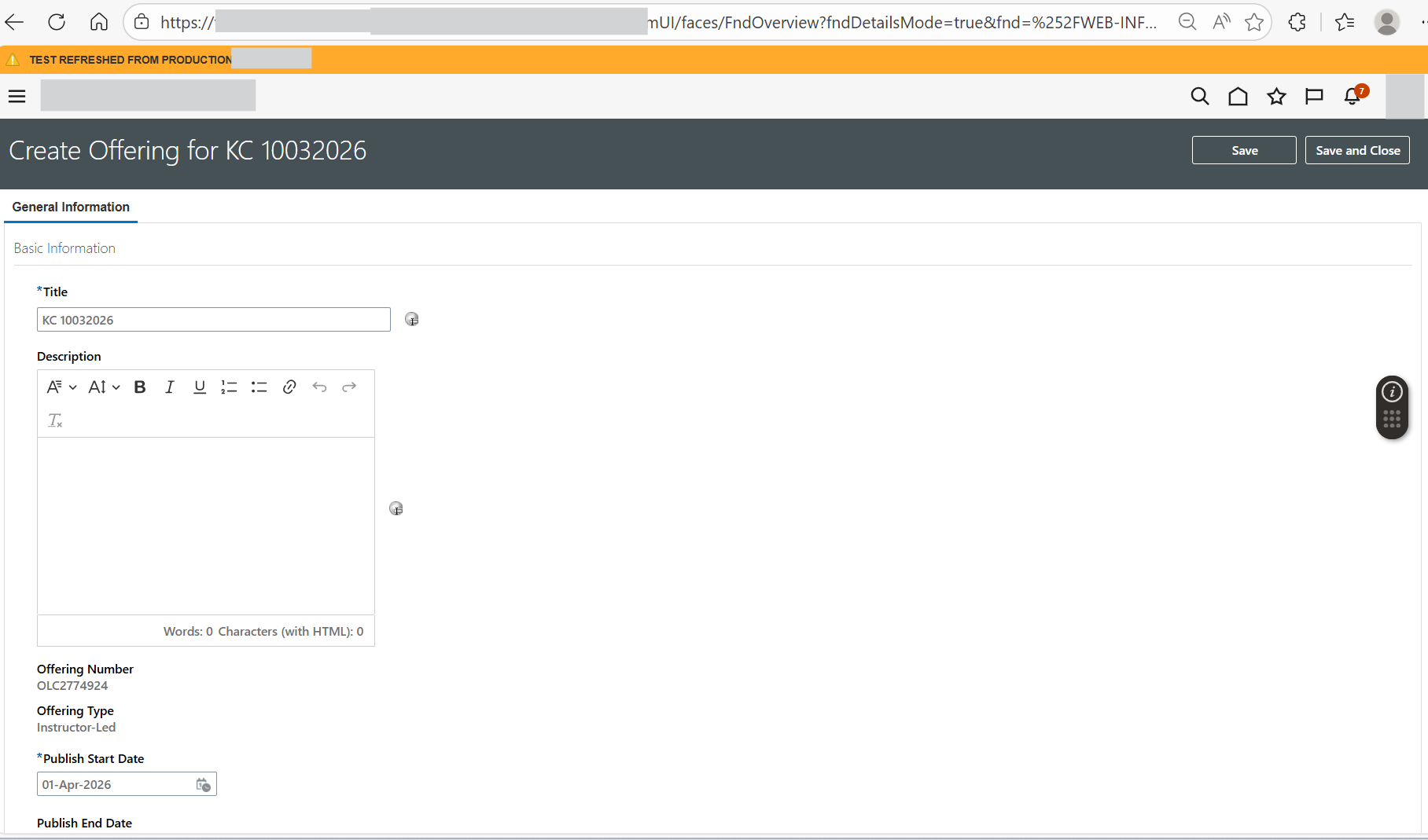 From Redwood - Learning Catalog > Course > Offering tab - when we click on Create and attempt to create any type of offering - the page is rendered in Classic or Responsive UI
