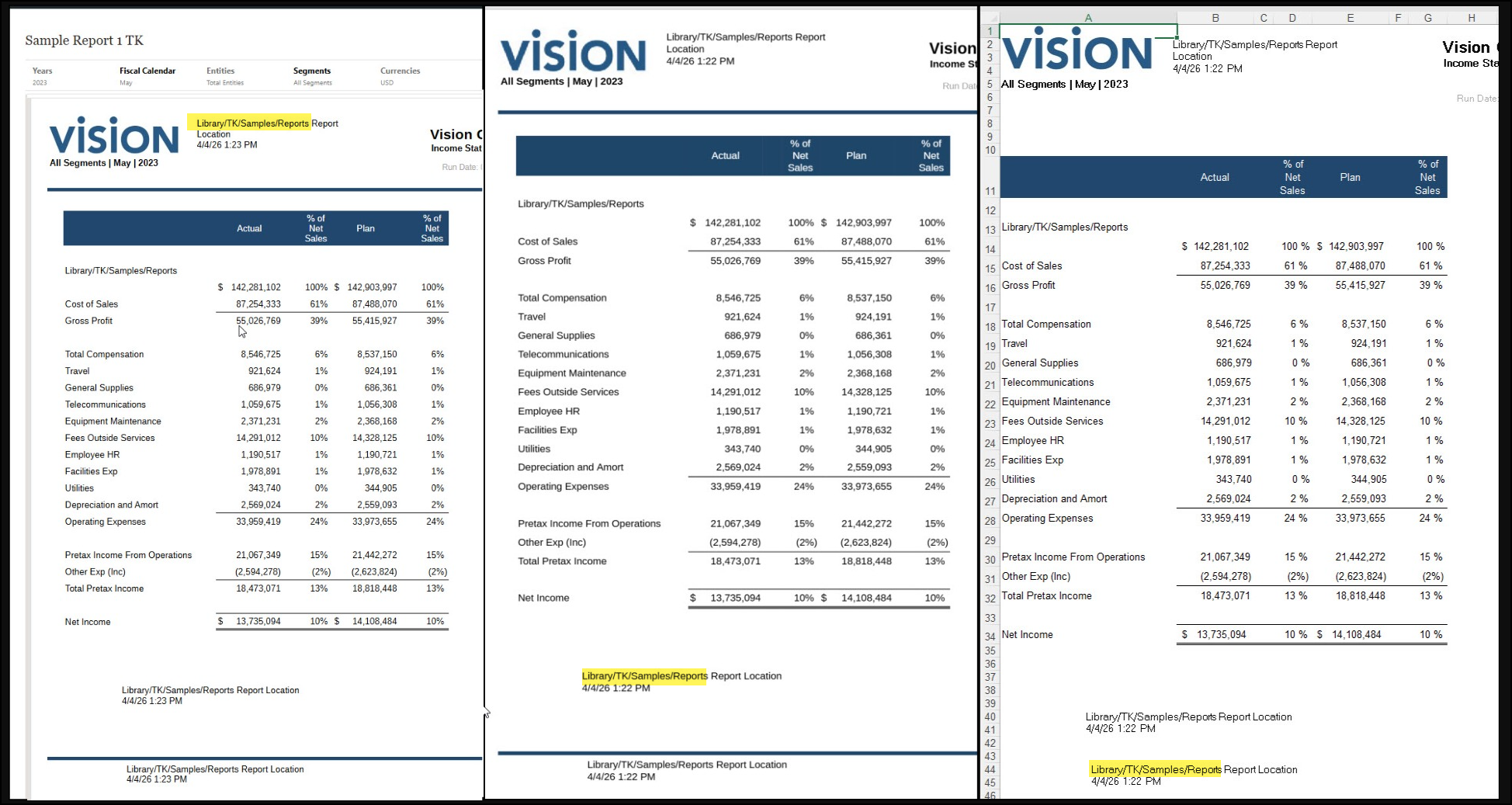 Report Location syntax not producing in book outputs