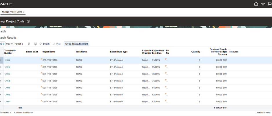 In “Manage Project Resource Management Implementation Otion, The chosen source is “Project Costing”.