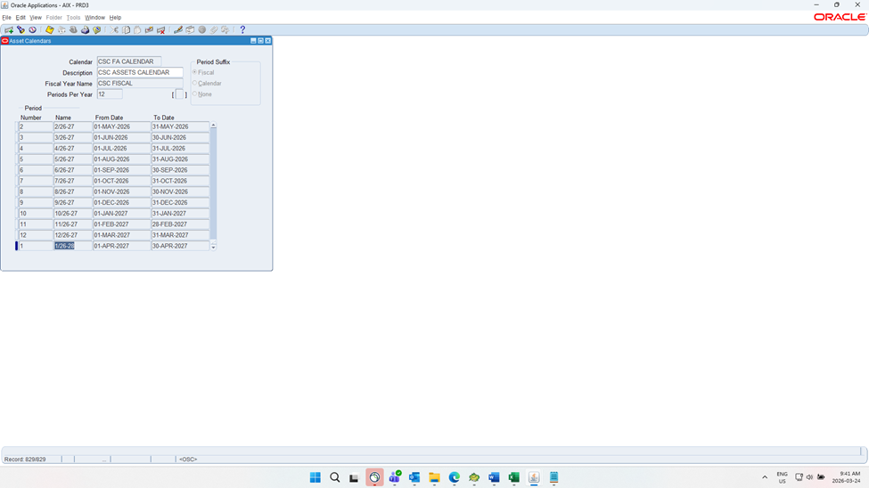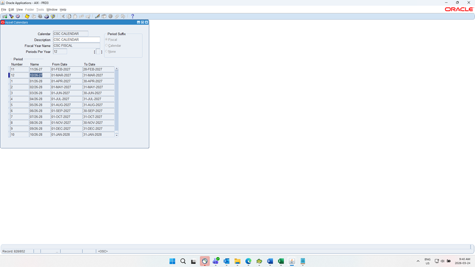 Fixed Asset Calendar new period name defaulted to 1/26-28 instead 1/27-28?