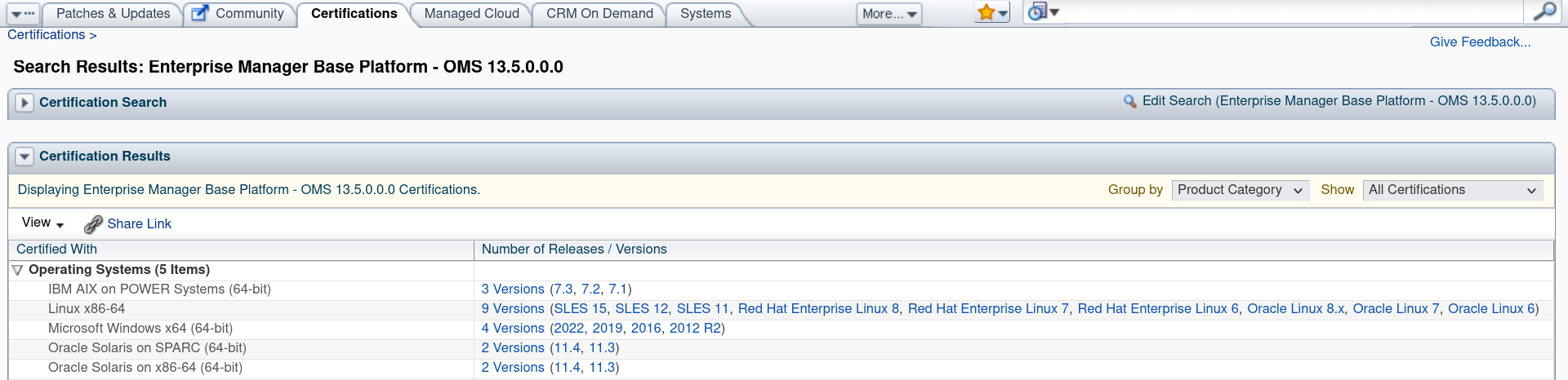 Re: OEM 13c Rel 5 Compatability matrix