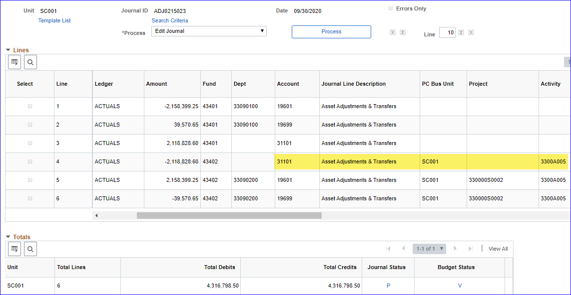The Journal Generator Template Summarization Option is set to Summarize to All Chartfields
