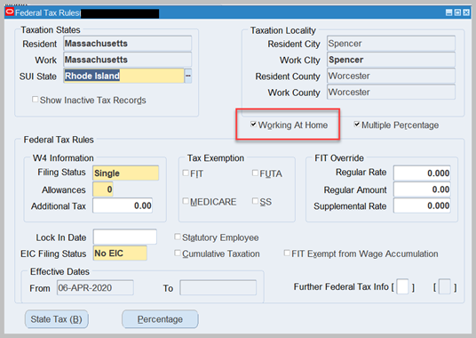 For example in R12.1, Person -> Assignment -> Standard Conditions TAB, is a check box called Working At Home.