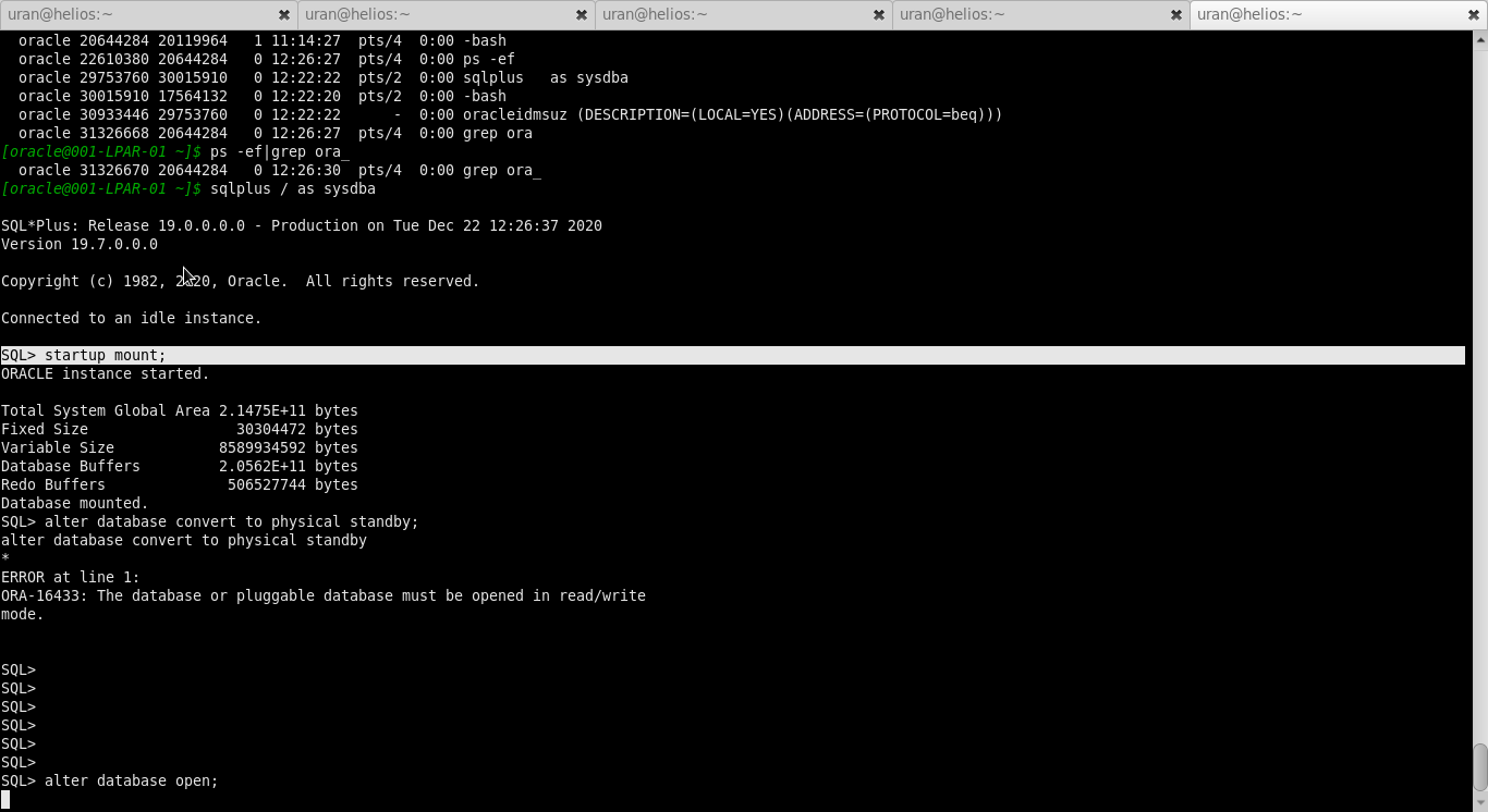 After converting physical standby to snapshot standby database hangs on "open" operation with this alert:
