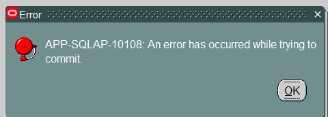 when click on Lines tab, received below error followed by APP-SQLAP-10108