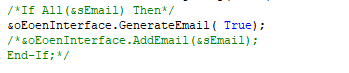 GenerateEmail code was not considered as commented in the prior release and worked. After upgrade this line appears as commented.