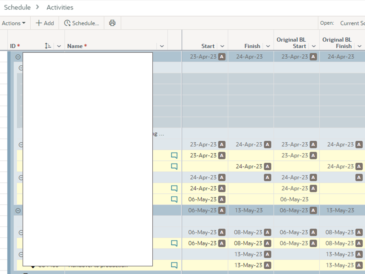 Hello, I'm designing a report that will help us compare current and forecasted dates vs Original Baseline dates.