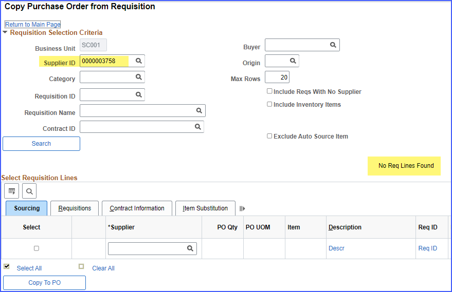 A requisition with a remaining balance and pre-encumbrance balance that has not been finalized cannot be copied into a PO. What is preventing the req balance from being copied into the PO?