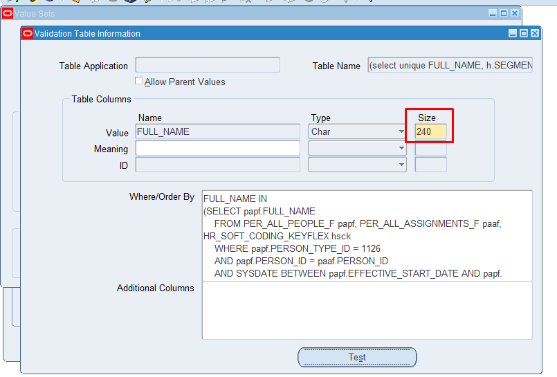 I would like to request assistance regarding the parameters of the customized report. We have increased the limit of characters in the value set, but the same error still appears.