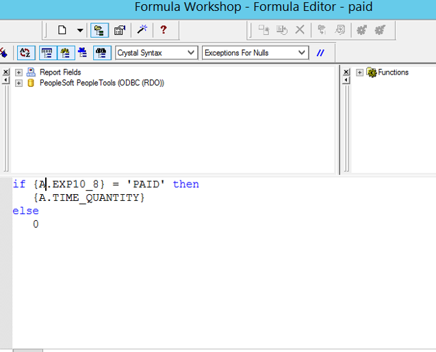 I am new to PeopleSoft, How do I implement this formula used on the Crystal Report on PeopleSoft Query manager?