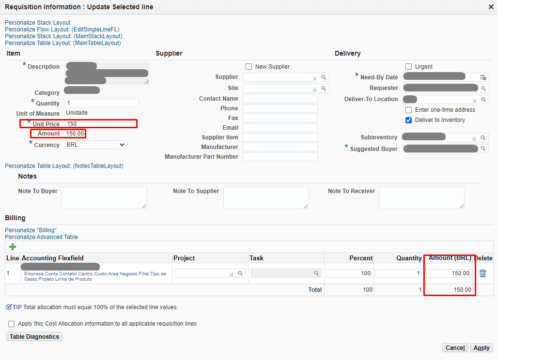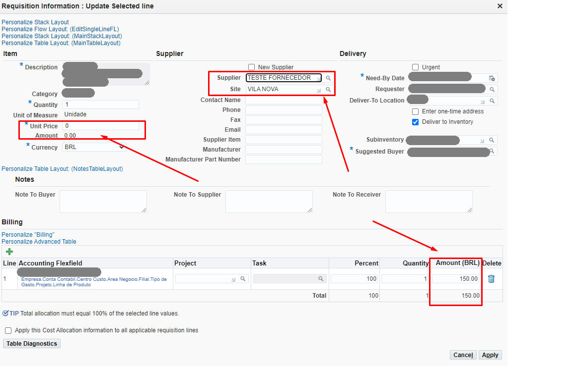 Hello, I am facing a problem when inserting a supplier in the purchase requisition. Every time a supplier is inserted, the "unit price" field receives the value zero.