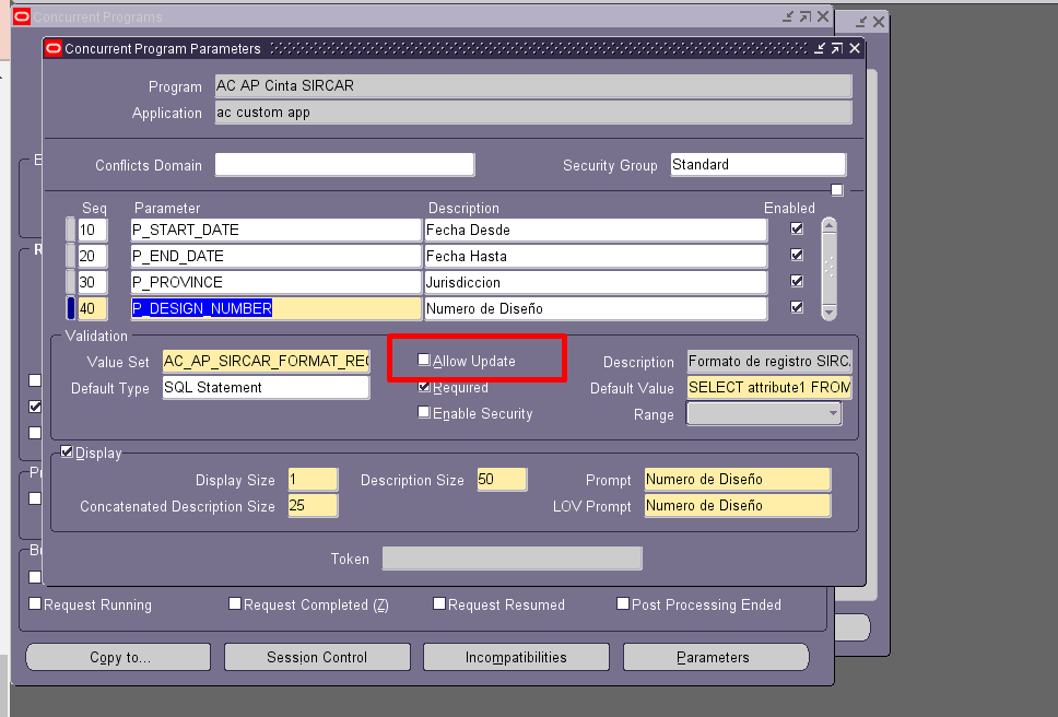 As the title says, when Submitting a Concurrent for the First Time, the Parameters is correctly freeze, avoiding update: