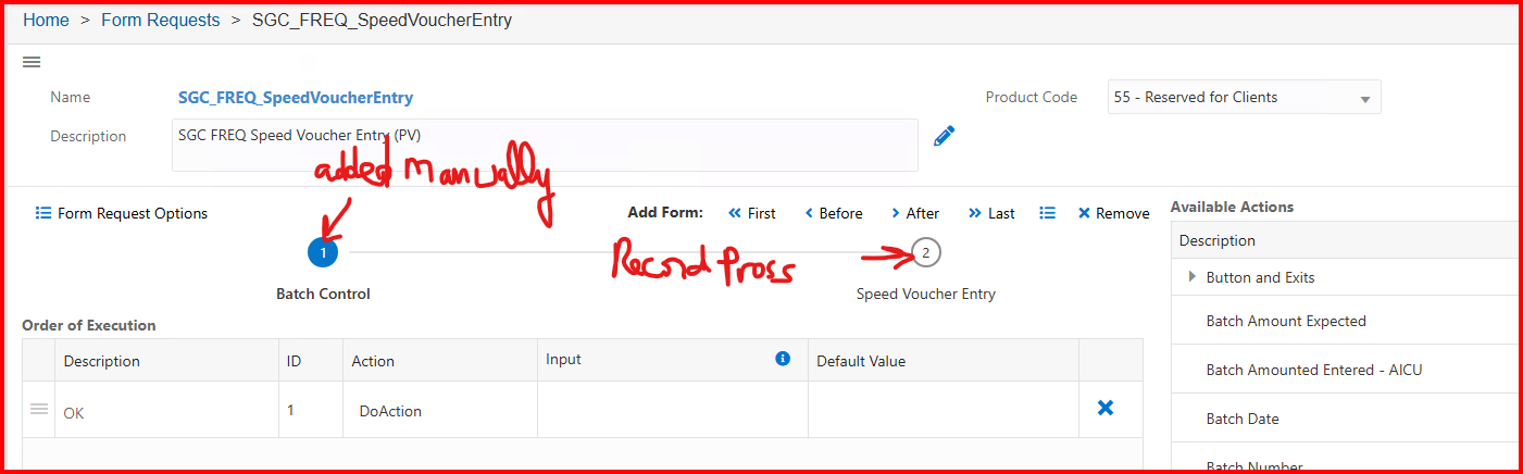 The system oblige me to click on the "OK" button on the Batch Control Program to get access to P0411SV program, at this point I was able to record the process. When finishing recording, so I end up only with "Speed Voucher Entry", I added manually Batch Control.