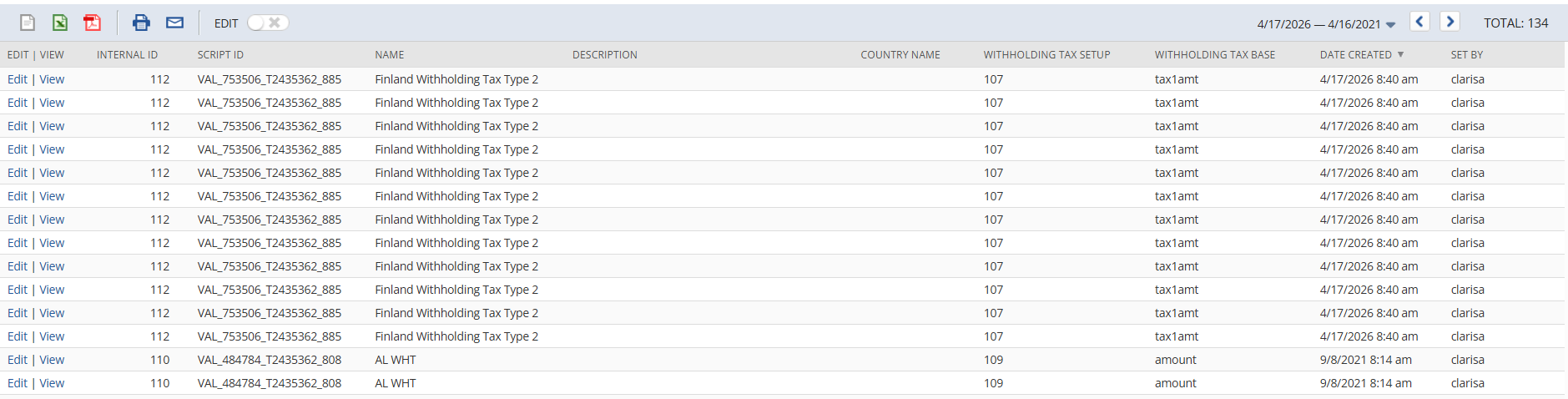 How to View Creation Details for Withholding Tax Types Using Saved Search