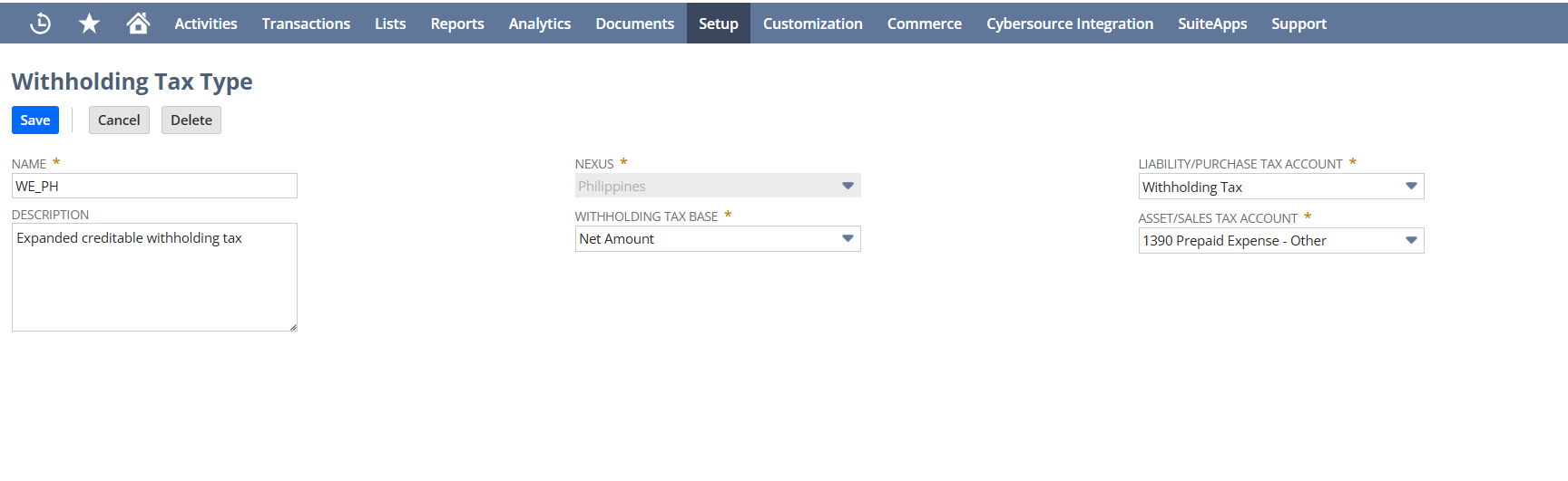 When opening a Withholding Tax Type record, you may notice that there is no System Notes tab available to show when the record was created or who created it. This can make it difficult to track record history directly from the form.