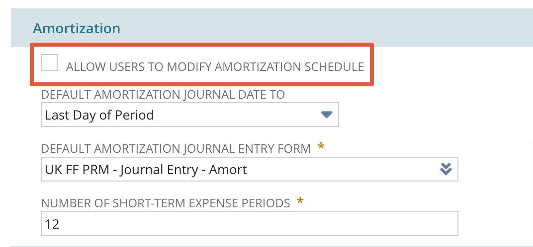 1. The accounting preference Allow Users to Modify Amortization Schedule = True