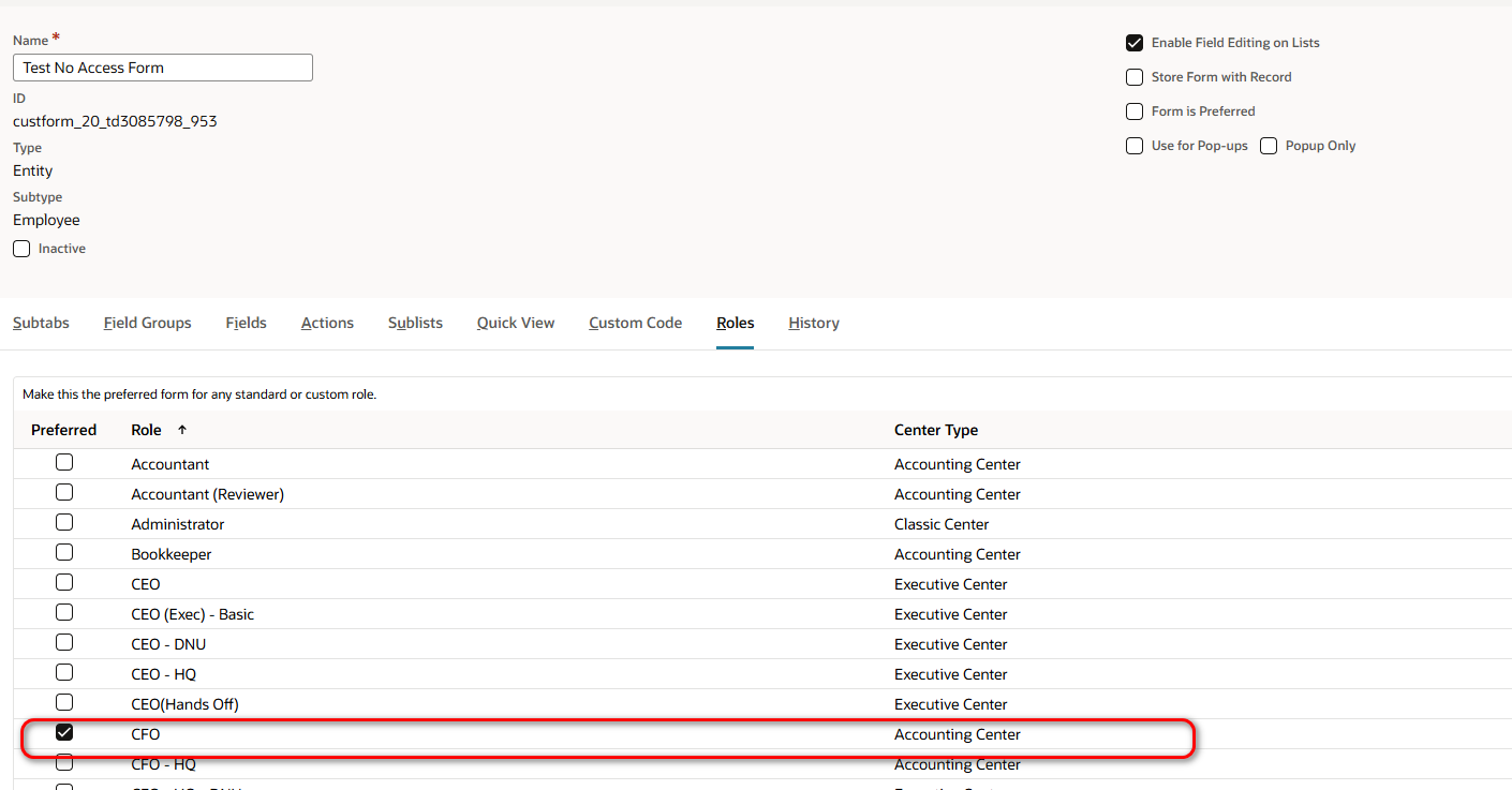 You can create a separate employee form without the "Access" tab. Then, set that form as the preferred form in the Roles section. Also, make sure to uncheck the "Form is Preferred" option at the top. Hope you are clear with this approach.
