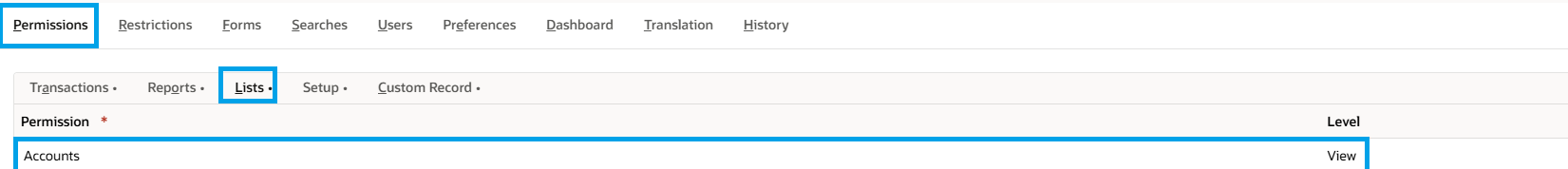 To resolve, update the custom role to include the required account permission: