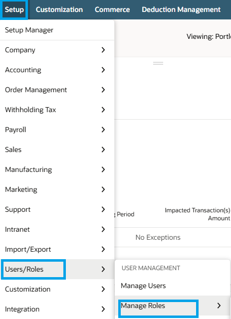 - Go to Setup > Users/Roles > Manage Roles