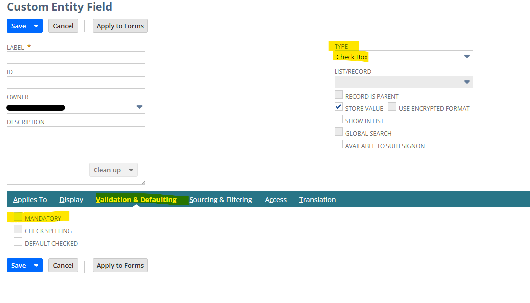I am trying to create a custom field with a type of checkbox as mandatory, although is greyed out.