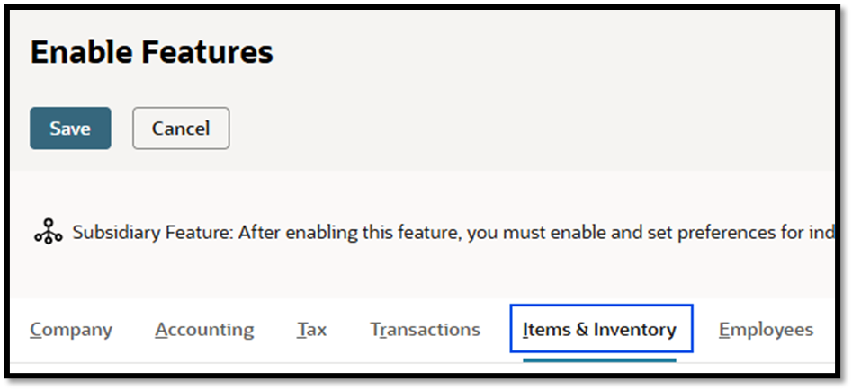 1. Using an Administrator role, navigate to Setup > Company > Enable Features.