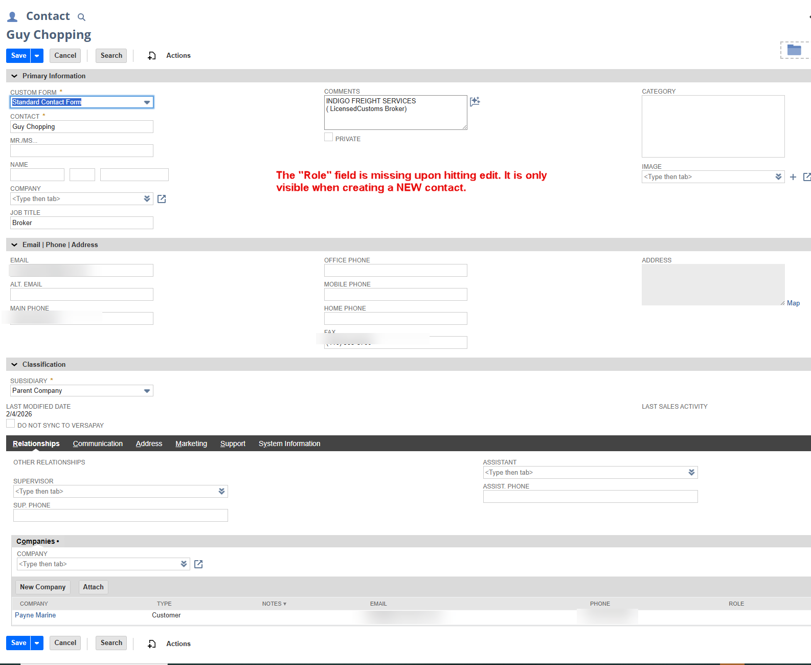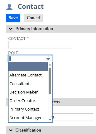 Second-when trying to add a contact role to an already existing contact the role drop down field is missing. Is this normal? Are you not allowed to update the customer contact role AFTER a contact has been created?