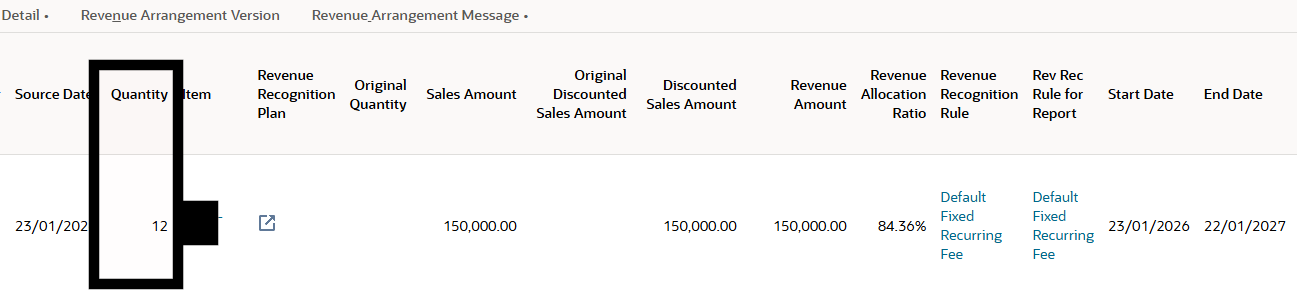 How does NetSuite determine Quantity on Revenue Arrangements?