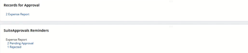 The Records for Approval portlet provides a quick view of the items that require your approval specifically Purchase Orders, Vendor Bills, and Expense Reports.