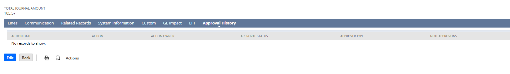 - Journal Entries went through an Approval Rule. This moved the JE's through a specific approval rule process.