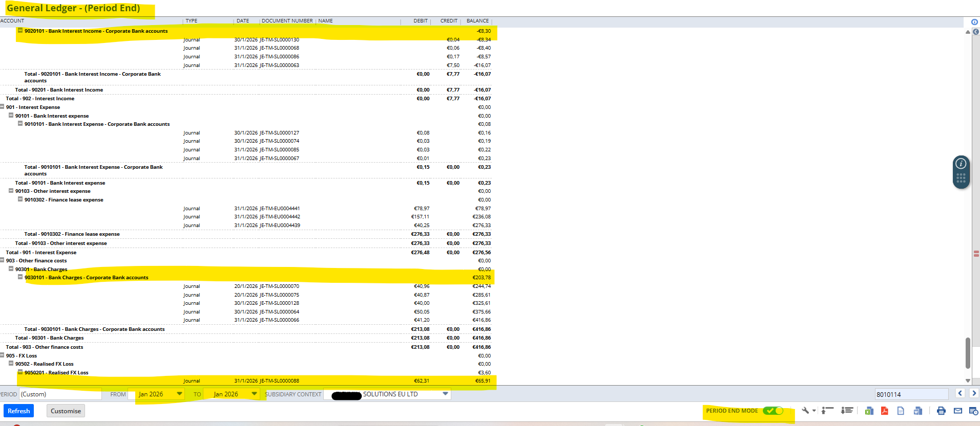 GL Report_P&L acccounts showing B/F balances while in "Period End" mode