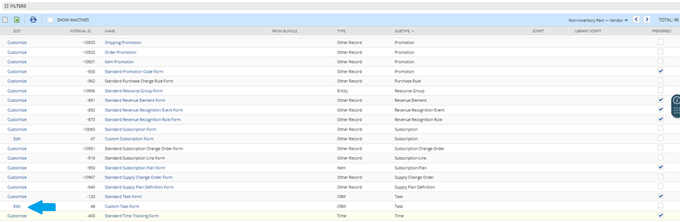 2. Edit the desired custom form.