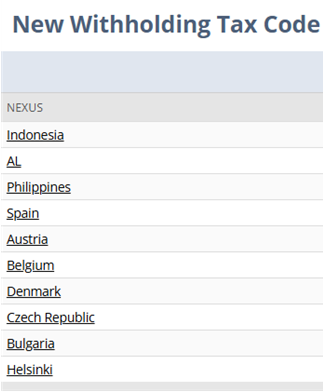 New to NetSuite | Withholding Tax Codes