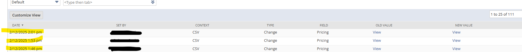 I imported new prices today, 12/8/25, but the price changes dont appear in the system information tab of the item. The most recent price update that appears on the system info tab is from 2/12/25, but I would expect to see an entry for 12/8/25 on the screen below.