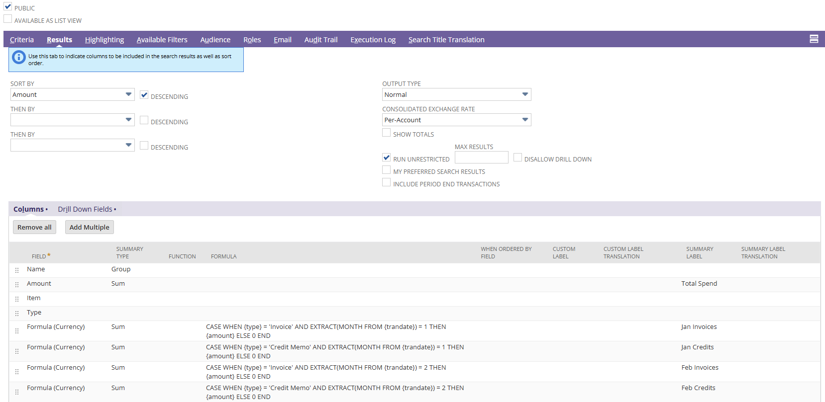 I have this saved search that returns results looking like this. These results are also the same if I change to a non-admin role.