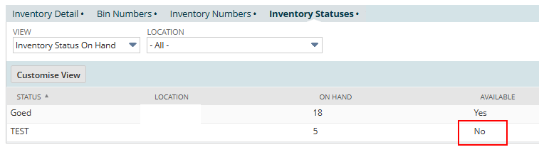 We have a status (TEST) that is set as No Available