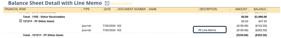 貸借対照表には仕訳入力のメモ詳細が含まれるようになり、財務チームはトランザクションに詳細に入り込むことなく、各ラインのコンテキストをすばやく理解できるようになりました。