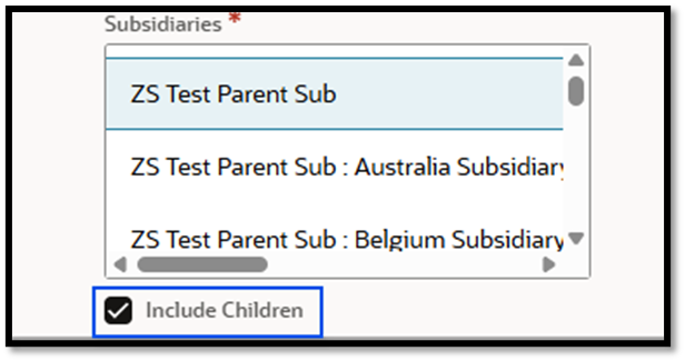 3. 必要に応じて1つ以上の子会社を選択します。